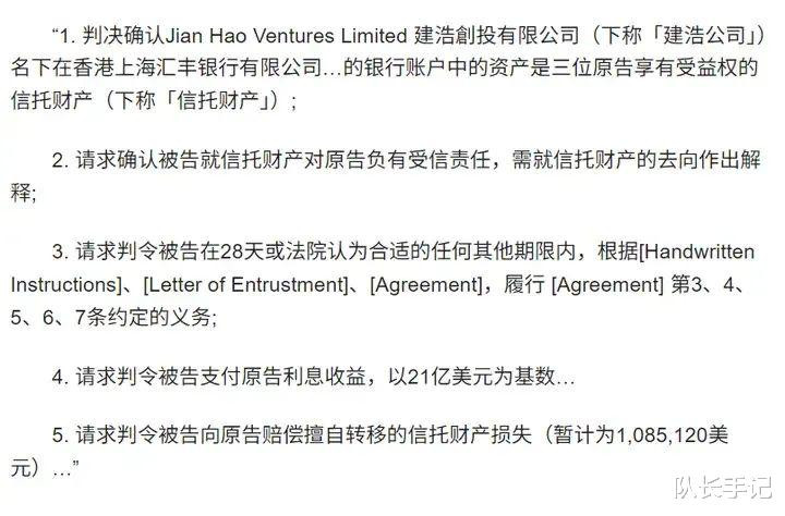 香港法院判了,关于宗庆后设立的21亿美元信托遗产,宗馥莉无权挪用,全部属于宗继昌、宗婕莉以及宗继盛。而且,这个信托不是宗庆后亲自设立的,而是他委托宗馥莉代理设立的。