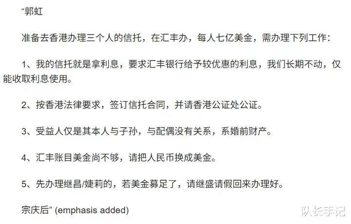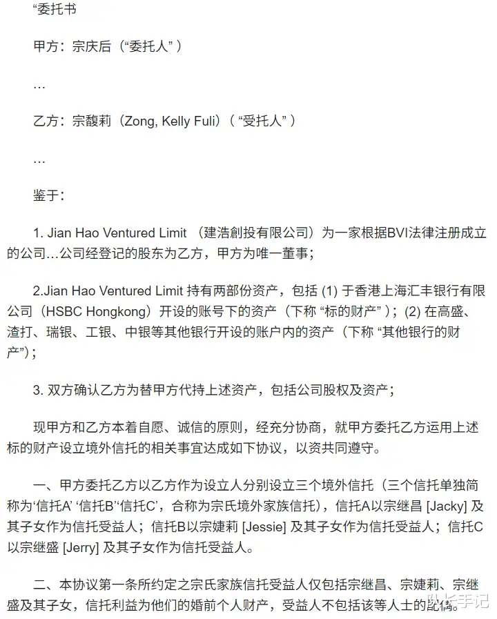 也就是说,宗馥莉早就知道,这笔钱属于她的三个“同父异母”的弟弟妹妹了。在杜建英赴美生子时,宗馥莉就在美国留学。等到宗庆后设立信托遗产时,也是宗馥莉经手操办。宗馥莉什么都知道,却又在她爸去世后,妄图推翻这一切。